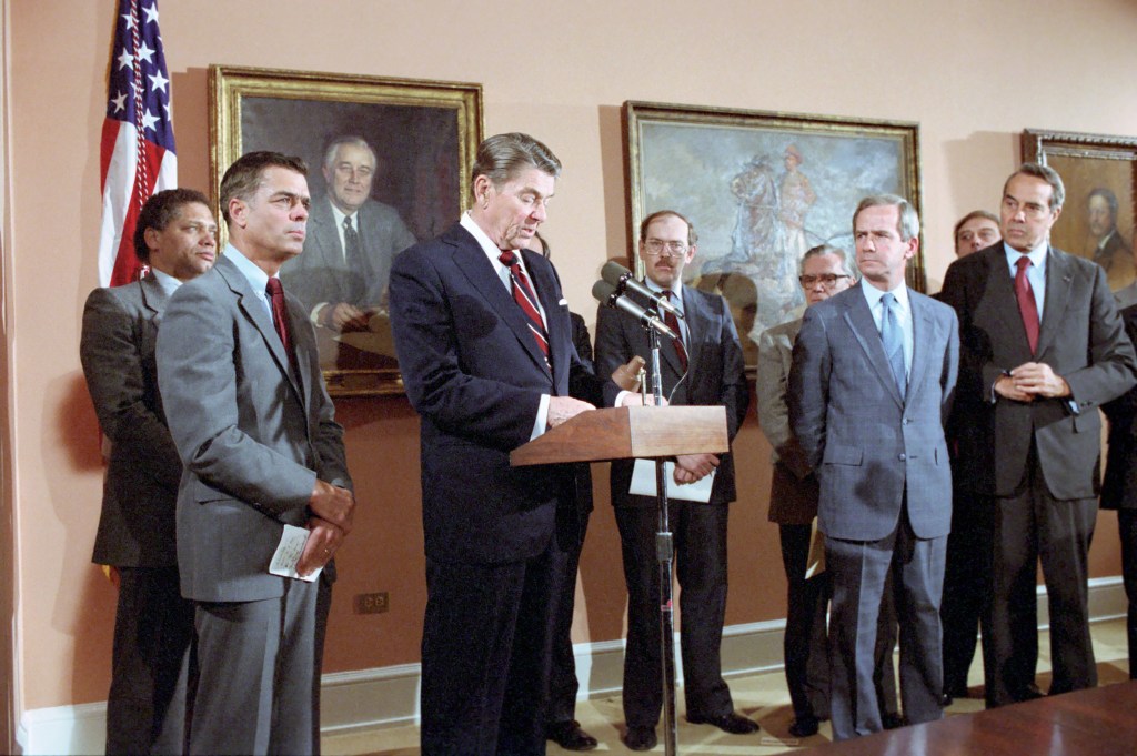 Decisions on domestic spending cuts have all been made by President Reagan, leaving him to decide next week how much he wants to cut the proposed military budget to reach his deficit reduction goal. Mr. Reagan has opposed slowing the military buildup, but some of his senior aides have said they expect him to accept some slowdown. President Reagan finished an initial round of deciding where to cut domestic spending and White House aides indicated the next move will be to determine how much the President’s planned military buildup must be trimmed to fight the flood of federal red ink. “We’ll have a pretty good feel at the end of the day as to how close we are to our… budget reduction goal for ’85, and I think we can then begin to work with defense numbers,” White House spokesman Larry Speakes said. The Washington Post reported that Reagan has given tentative approval to a package of $34 billion in domestic spending cuts for next year.