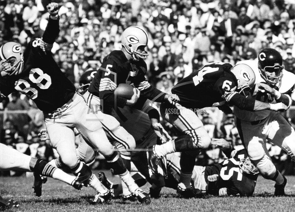 Willie Wood’s brilliant punt returns and Jim Taylor’s battering to his fifth succesive 1.000-yard rushing season swept the Green Bay Packers to a 17–3 National Football League victory over the Chicago Bears today. Wood’s punt returns of 64 and 42 yards set up both Green Bay touchdowns in the nationally televised game before 43,646 shivering fans in snow-covered Wrigley Field. Taylor, who exploded 13 yards for the second Packer touchdown in the third period, wound up with 89 yards for the day and 1,005 yards in 13 games, the first man in N.F.L. history to rush more than 1,000 yards in five straight seasons. Wood’s first big punt return gallop, 64 yards to the Bear 16 came in the second period. Four plays later. Paul Hornung smashed 5 yards for the touchdown, which gave Green Bay a 7–0 lead. Hornung also booted a 9-yard field goal in the fourth period and kicked the points after both Packer touchdowns. The Bears, who had won three straight, never advanced beyond the Packer 15 and then had to settle for their only points on Roger Leclerc’s 31-yard field goal five seconds before halftime.