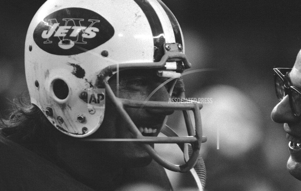 Adding another chapter to his storybook career, Joe Namath rallied the New York Jets to their fifth straight victory yesterday, a 20–10 conquest of the playoff‐bound Buffalo Bills, in what was perhaps the quarterback’s last game as a Jet at Shea Stadium. After saying before the game “I don’t think I’ll be back,” Namath erased a 10–6 deficit on the windy, rainy afternoon with a 36-yard touchdown pass on which Jerome Barkum made a brilliant leaping, one-handed catch with 4 minutes left in the game. Then two minutes later, Ralph Baker, who came to the Jets in 1964, a year before Namath, intercepted a pass that bounced off O. J. Simpson’s knee when Al Atkinson hit him from behind and chugged 67 yards down the muddy field for the clinching touchdown. The outcome not only kept alive the hottest streak in the National Football League but it also shattered the Bills’ chances of dethroning the Miami Dolphins as the American Conference’s Eastern Division champions. Buffalo, however, already had gained a postseason berth as the wild-card team and will face Pittsburgh in the American Conference playoffs December 22. Miami will be at Oakland in the other A.F.C. contest December 21. The Jets aren’t going anywhere but home after the season, but they can even their won-lost record at 7–7 if they beat Baltimore next Sunday in what could be the last chapter in Namath’s 10-year Jet career.