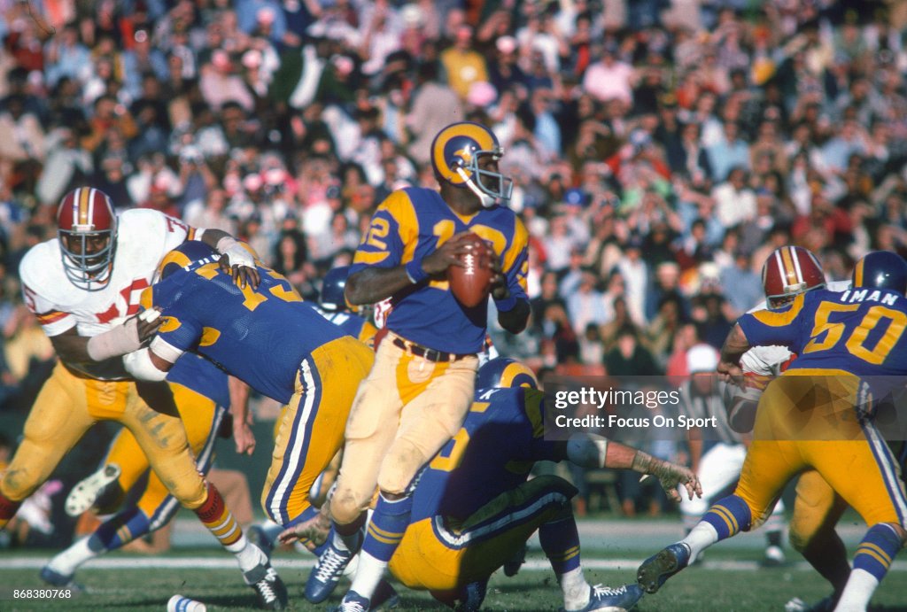 Aided by an incomprehensible gamble by the Los Angeles Rams early in the second period, the Washington Redskins went on to 23–17 victory tonight that earned them the eighth and final berth in the National Football League playoffs. By beating the Rams, who had already clinched their own place as champions of the Western Division, the Redskins eliminated Dallas and Detroit as wild‐card possibilities, and tied the St. Louis Cardinals for first place in the Eastern Division of the National Conference. Both will be in the playoffs, although which will face the Rams and which will play Minnesota must be determined by the outcome of their final games on Sunday: St. Louis against the New York Giants and Washington against the Chicago Bears. The Redskins outplayed the Rams after the first 13 minutes, during which Los Angeles took a 10–0 lead; they scored 20 points in the second quarter, the most any team has accumulated in one period against the Rams, and held off a couple of challenges in the second half. James Harris, knocked woozy late in the second period, did not play at all after intermission and the Ram quarterbacking was done by Ron Jaworski. But the flow of the game changed dramatically, in Washington’s favor, after the Rams unaccountably tried a pass from punt formation on fourth down with 10 yards to go on their 23‐yard line, while leading, 10–6, in the second minute of the second quarter. Such a play would be risky enough under the most desperate circumstances; it seemed entirely unnecessary at that time. Mike Burke’s pass was knocked down, the Redskins took over in position to get a gift touchdown, and a couple of minutes later they had it and a 13–10 lead. They never trailed again.