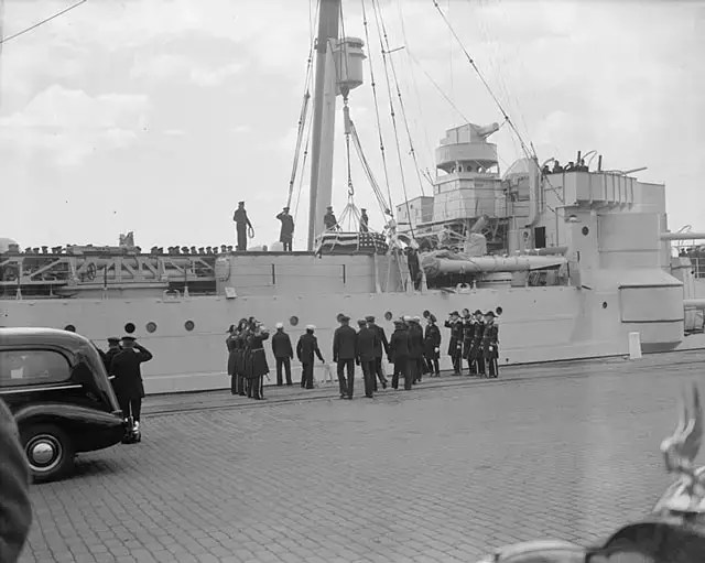 Battleship VALIANT departed Plymouth on trials after refit, escorted by destroyers ACASTA and ARDENT. She was to have arrived back on the 11th, but due to submarine activity in the area, remained at sea overnight with destroyers ENCOUNTER, ARDENT, ACASTA and GRENADE. She then headed for Portland, reaching there on the 12th and leaving on the 14th for Bermuda. VALIANT was met by destroyer HYPERION on the 21st, 240 miles 70° from Mount Hill Light and reached Bermuda on the 22nd for working up after the refit. She arrived back at Bermuda on the 25th.