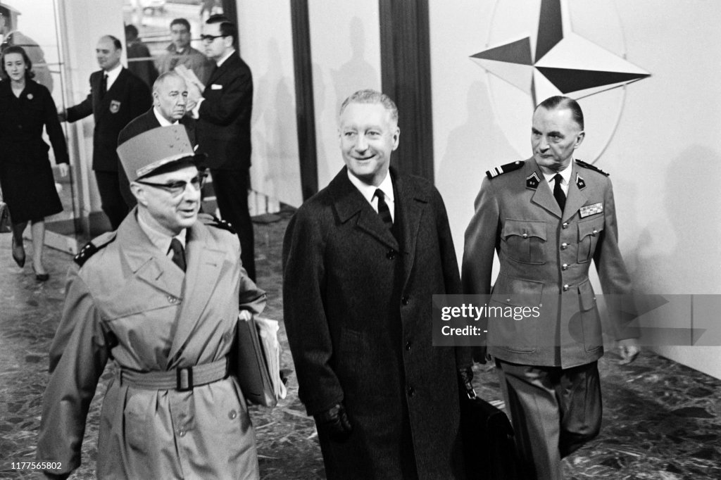 The quarrel in the Atlantic alliance over Washington’s proposal for an allied nuclear fleet openly strained the fabric of Western cooperation today. The foreign ministers of the United States and West Germany took positions favoring the force. To some extent their British counterpart joined them. Maurice Couve de Murville of France led the dissenters with backing from Belgium, Norway and Denmark. The issue, which most ministers had hoped to discuss only privately, dominated the 34th session of the North Atlantic Treaty Organization Ministerial Council almost from the outset.