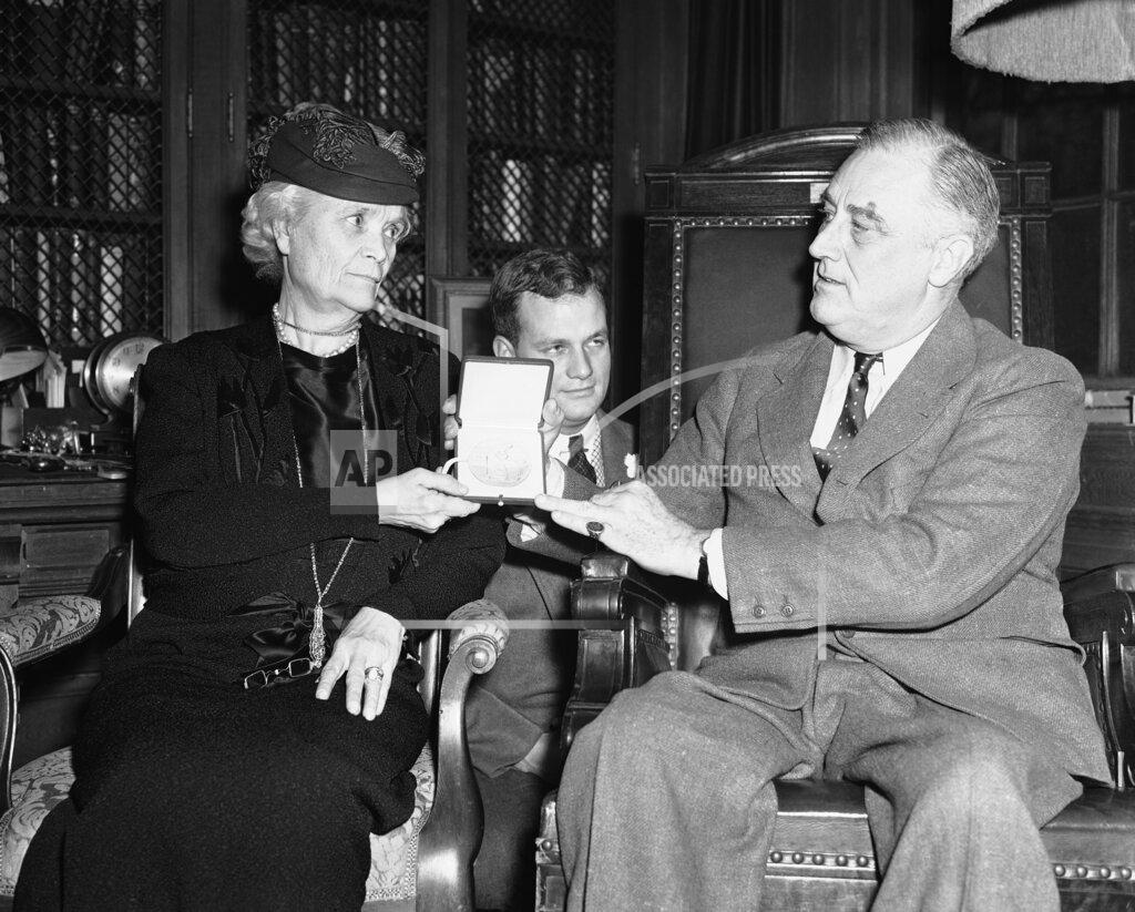 The heroic service of a Spanish-American war nurse received a belated reward of a grateful government today when President Roosevelt presented Mrs. Richard Aldrich of New York with a Congressional gold medal in recognition of her work of establishing hospitals and caring for military patients at Puerto Rico.