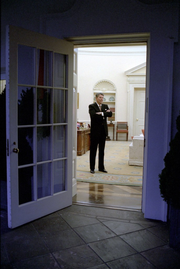 President Reagan participates in a meeting with the Joint Chiefs of Staff.
