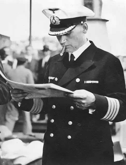 Commodore Harwood — victor of the Battle of the River Plate — is promoted to Rear-Admiral.