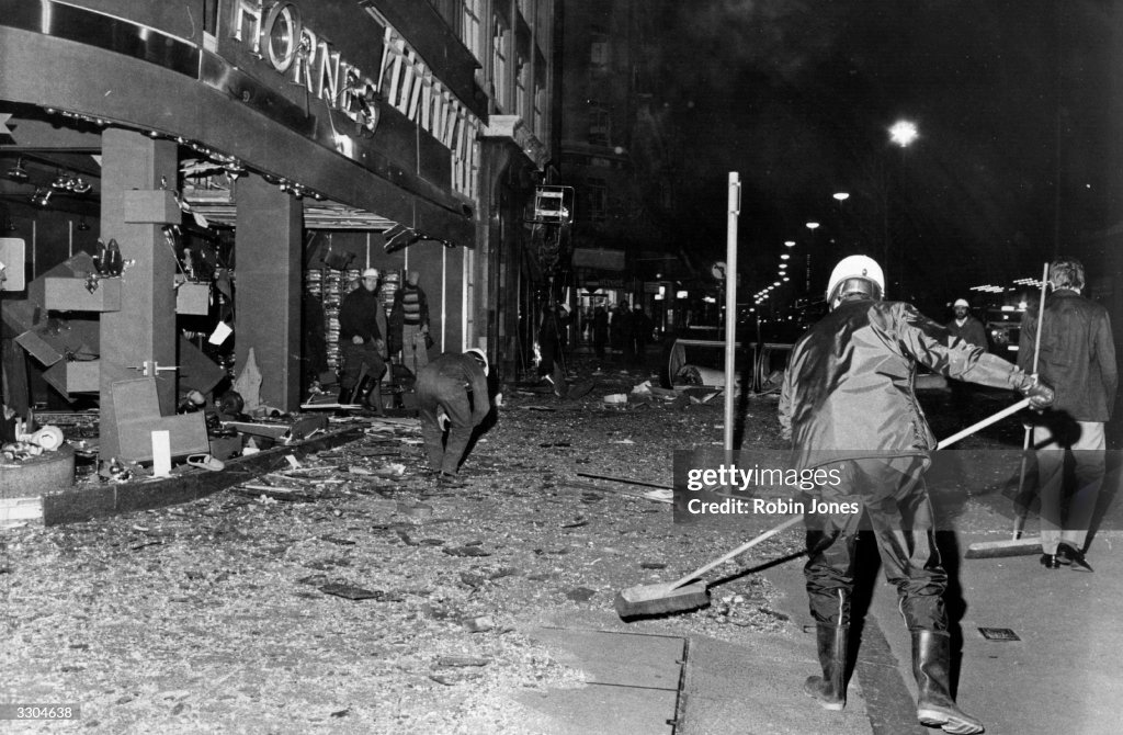 A bomb exploded in a police car today in Jerusalem’s busy Zion Square, wounding bystanders, destroying the vehicle and shattering the front of a store. The bomb had been found in a paint can outside a coffee house. Police officials said two policemen who had placed the bomb in the car moments before it went off were in fair to serious condition. Ten other persons were treated for lighter injuries. The police said that about 100 suspects, mostly Arabs, were detained in the vicinity immediately after the blast.