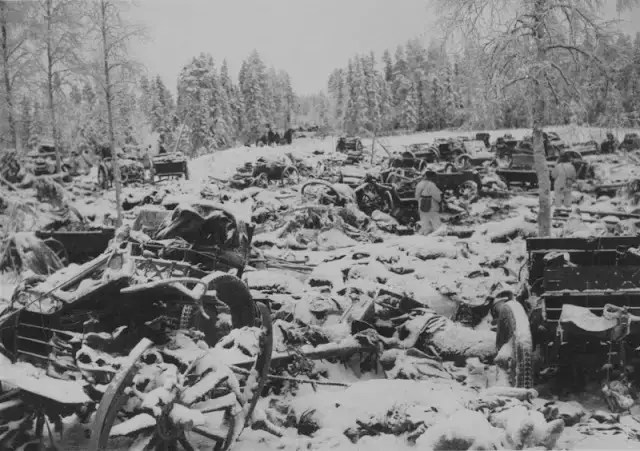 At Suomussalmi, the Finnish 27th Regiment is reinforced and now called the 9th Division. It has had the Soviets in the village surrounded for a week without any significant attempts to break the blockade by the relief force. The Soviet 44th Division has enough problems as it gets cut up by the Finns on the Ratte road. The commander of the 163rd Division trapped in the town, Andrei Zelentsov, asked permission to retreat from Suomussalmi. Permission is denied and he is told that more troops are being sent to rescue him.