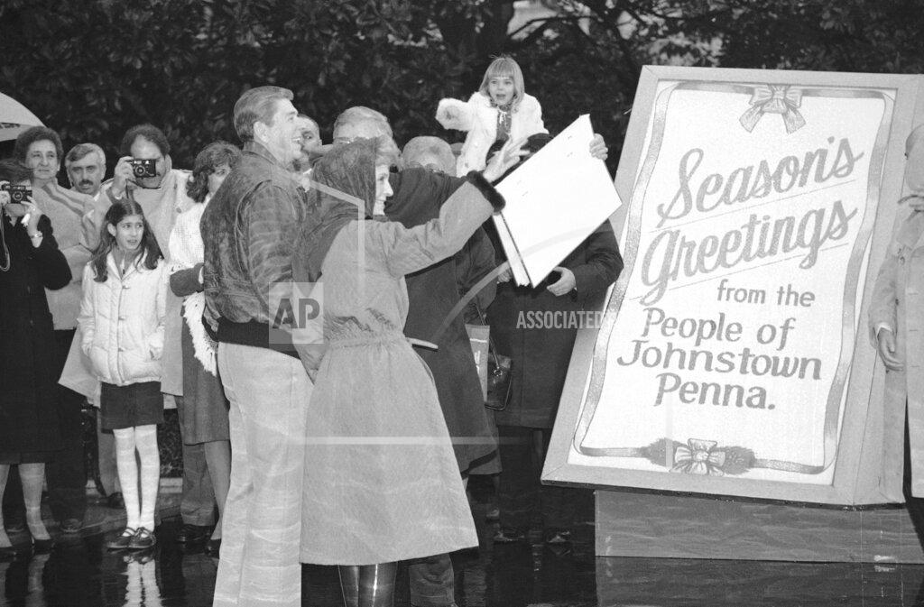 The President and First Lady receive an eight-foot Christmas Card from the mayor and people of Johnstown PA, with 50,000 signatures on it.