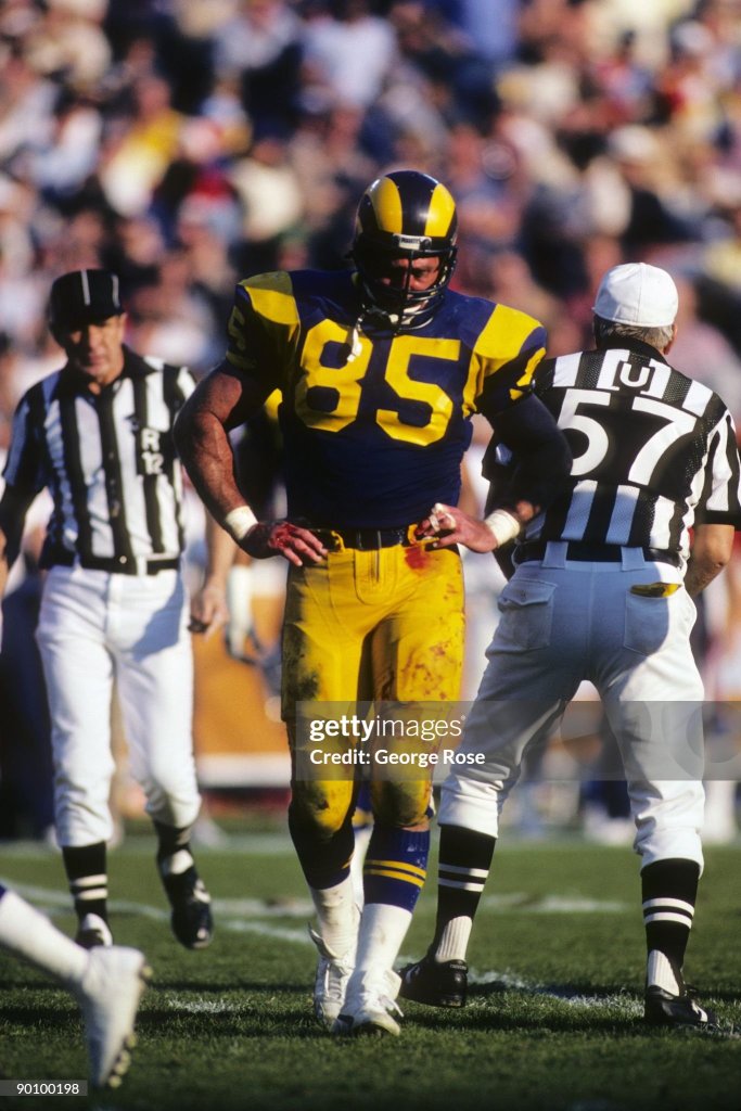 Haji-Sheikh kicked a 39-yard field goal in the third quarter, but this was countered by Dickerson’s 14-yard touchdown run, making the score 13–10. New York responded with Haji-Sheikh’s 36-yard field goal five minutes later to go up by 6 points. LA then took the ball back and drove to a first down on the Giants 7-yard line, with Dickerson rushing four times for 44 yards along the way. Dickerson picked up 3 more yards on the next play, but then Giants defensive end Leonard Marshall dropped fullback Dwayne Crutchfield for a 3-yard loss and Jeff Kemp’s 3rd down completion to Henry Ellard picked up just 2 yards. Faced with 4th and goal from the 5, the Rams decided to settle for Lansford’s 22-yard field goal, cutting their deficit to 16–13 with 7:02 left in the game. Los Angeles caught a break on the Giants next possession when Joe Morris’ 61-yard run was eliminated by a holding penalty against center Kevin Belcher and the team ended up punting. This gave the Rams one last chance to drive for the tying field goal or winning touchdown at the 2:48 mark. However, they were unable to gain even a single first down. Faced with 4th and 6 after three plays, Kemp was sacked by George Martin and fumbled the ball. Linebacker Andy Headen recovered for New York on the Rams 33, enabling them to run out the rest of the clock. This game marked an impressive turnaround for the Giants, who had finished the previous year with a 3–12–1 record. Both teams combined for just 406 yards (214 for LA, 192 for New York). The only offensive star of the game was Dickerson, who rushed for 107 yards and a touchdown, though he rushed for only 37 yards on 12 carries in the first half, including his costly fumble. This was the first postseason meeting between the Giants and Rams.
