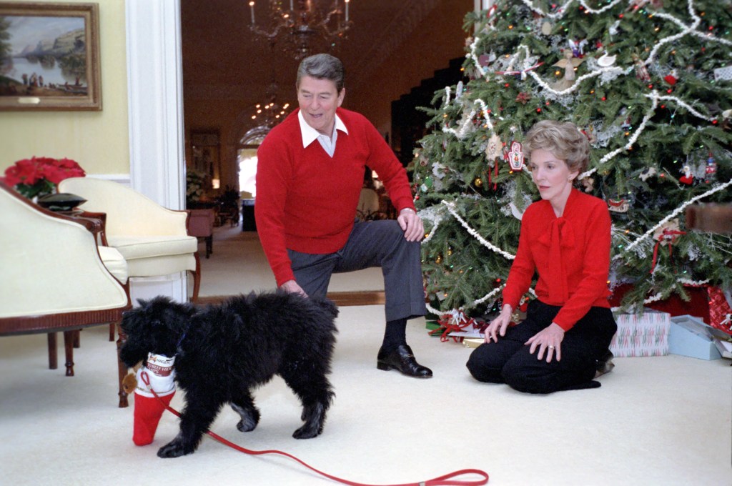President Reagan places calls to members of each of the five branches of the military who are standing guard on Christmas.