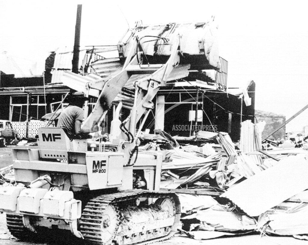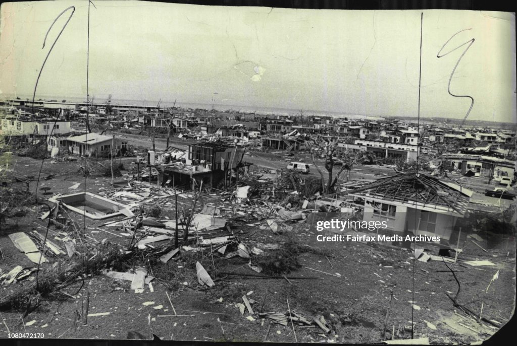 Cyclone Tracy, which struck the city of Darwin the night before and raged through the early morning hours, moved onward by 8:30 a.m. after having killed 66 people, 45 of whom were on land and 21 at sea, and causing US$645 million in damage.