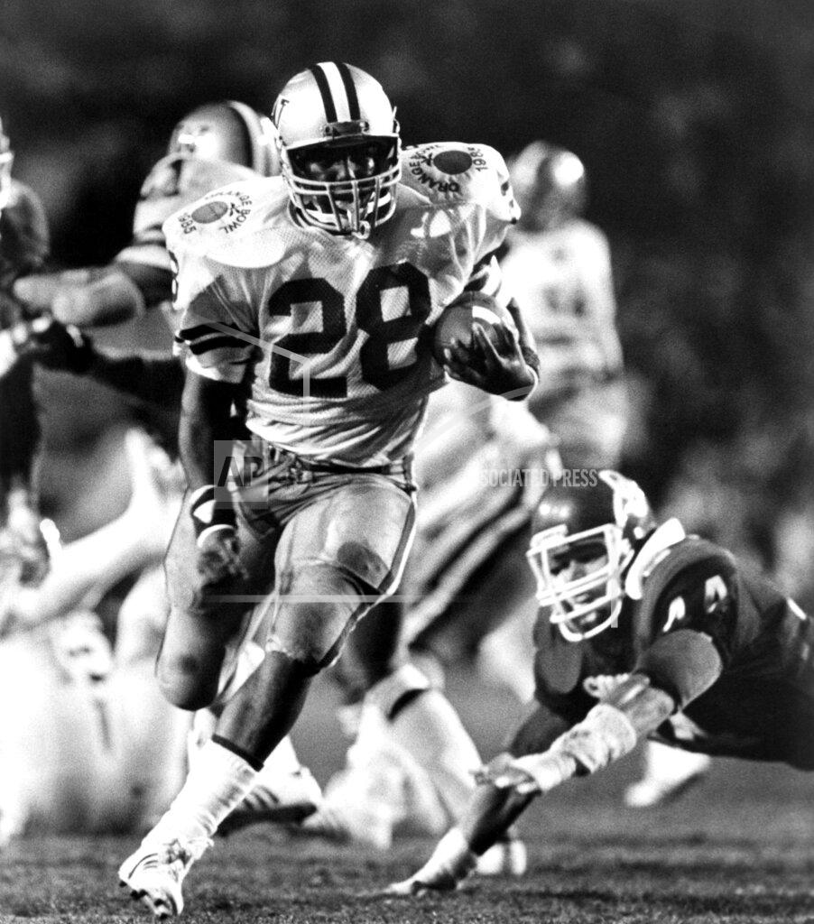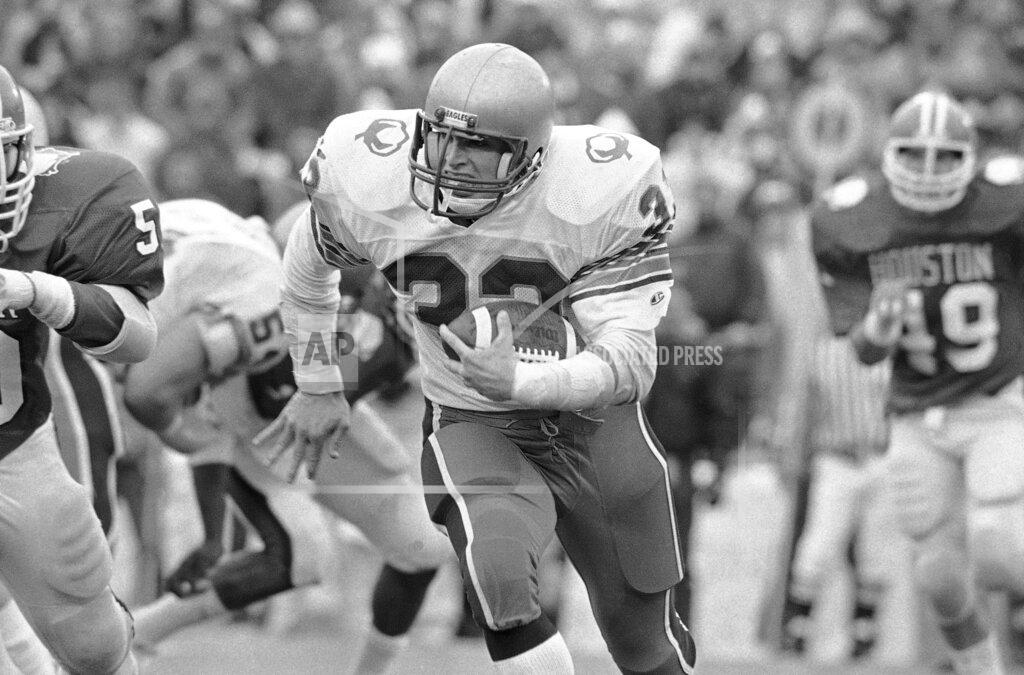 49th Cotton Bowl: Boston College defeated Houston, 45–28. Doug Flutie led Boston College to victory over Houston. The Heisman Trophy winner passed for three touchdowns in the first 20 minutes, but had trouble later, completing only 2 of 14 passes in the second half and being intercepted twice. The Eagles rolled to a 31–14 lead at halftime on Flutie’s three touchdown passes (to three different receivers) and a Steve Strachan 2-yard touchdown run, despite the Cougars’ two quick ways of scoring touchdowns, one of which occurring when Larry Shepherd caught a Gerald Landry pass for a touchdown with 22 seconds left in the half. Raymond Tate narrowed the lead with his touchdown late in the third quarter. Audray McMillian intercepted a Flutie pass and returned it 25 yards to the end zone to make it 31–28 as the third quarter ended. But the Eagles scored with 5:45 remaining on a Strachan 4-yard touchdown run. Troy Stradford sealed the game with a 18-yard touchdown run with 1:06 to go in the fourth quarter as Boston College won their first Cotton Bowl.