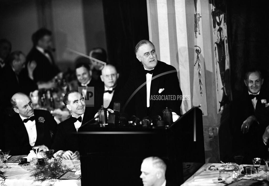 The President’s speech, good-humored, filled with anecdotes and chidings for the Republican leaders who declined invitations to the dinner, was in the main a plea for the type of party leadership which could keep the independent vote within the Democrat corral. An oblique reference to the fact that he had held the coalition together so effectively in 1936 was the crumb generally seized upon by those present as indicative of the feeling that he might consider himself the one to do it again in 1940.