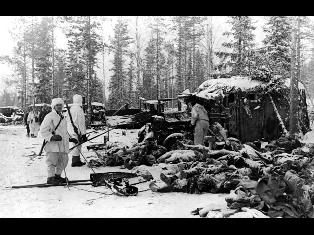 The Battle of Suomussalmi ended in Finnish victory. Two Soviet divisions were encircled and destroyed. In Finland, Finnish 9th division took possession of Raate Road at dawn after taking 1,000 Soviet prisoners of war, 43 tanks, 70 field guns, 278 vehicles, 300 machine guns, 6,000 rifles, and 1,170 horses. An estimated 700 Soviet troops would be successful in escaping back into Soviet lines, but many of these would be shot by NKVD agents for treason for retreating.