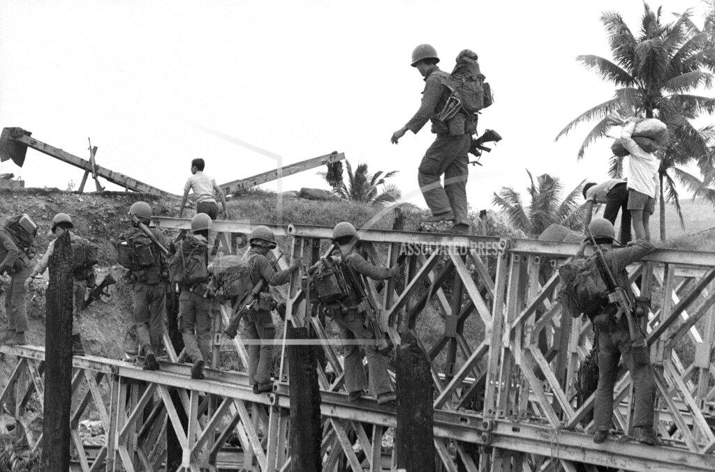 This compound where the soldiers are encamped is a pagoda complex where saffron‐robed monks with shaven heads used to chant their sing‐song Buddhist prayers and ring the shrill temple bells with wooden hammers on holy days. Today the monks are gone and the pagoda is a front line. Only 500 yards away sit the insurgents,‐also Cambodian, but usually led by Communists and dedicated to the downfall of the American-backed Government in Phnom Penh. Every so often they let loose at the compound with a barrage of mortar shells and machine‐gun fire — not so much to try to cut down the garrison as to remind the government troops that they have not gone away. Starting from this point only about 15 miles southeast of Phnom Penh, the insurgents have seized control of a 13‐mile stretch of this road, Route 1. It is a vital road, for it parallels and commands the Mekong River, the government’s main supply line, on which ply the freighter convoys of American ammunition and food. All other surface supply routes were cut long ago by the rebels.