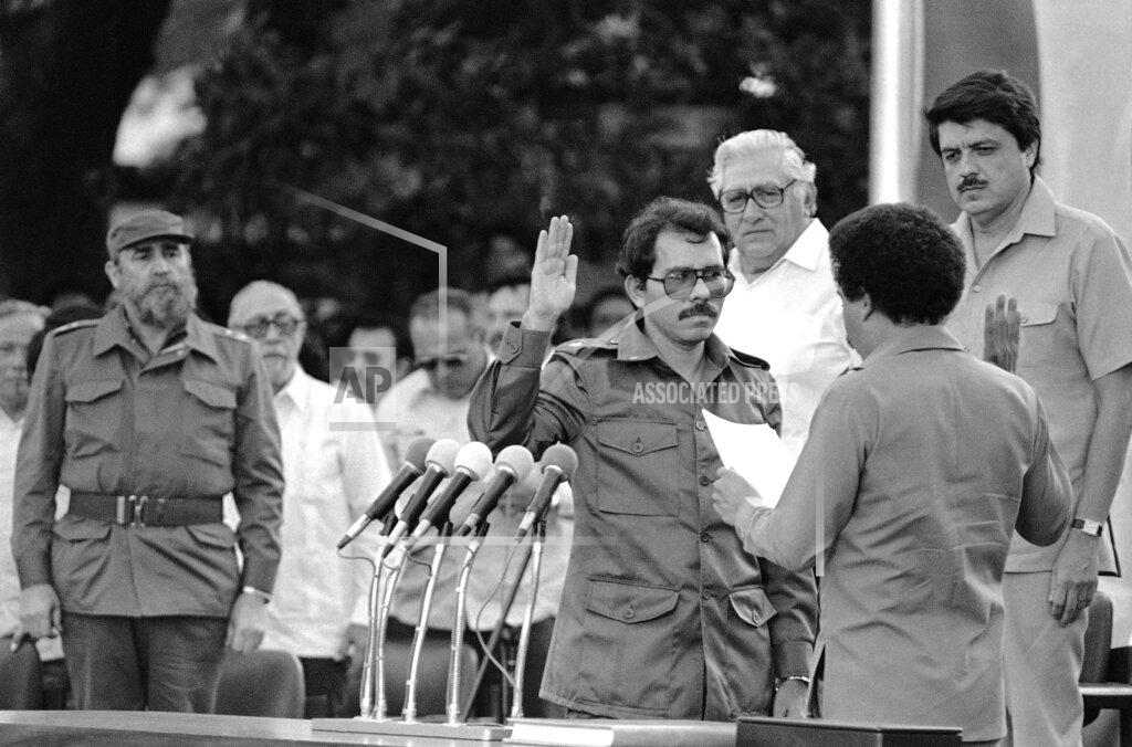 Nicaragua’s new president, Daniel Ortega Saavedra, was inaugurated in a ceremony marked by the unexpected arrival of the Cuban leader, Fidel Castro. Mr. Castro was expected to remain in Nicaragua overnight. Government officials suggested he might take part Friday in the dedication of a large sugar refinery outside Managua that was built with Cuban help. Mr. Castro appeared buoyant as he stepped off a Cubana airliner at midmorning. He smiled broadly as he embraced Mr. Ortega and other Nicaraguan leaders, and waved in the direction of reporters.