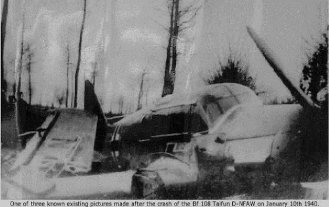 Mechelen incident: A German aircraft with an officer on board carrying plans for Fall Gelb, the German invasion of the Low Countries, crash-landed in neutral Belgium. German Bf 108 liaison aircraft flies, against very strict regulations, on the Belgian side of the border with an officer carrying Fall Gelb (Invasion of France) plans. Major Erich Hoenmanns, the pilot, loses his way while flying from Loddenheide to Cologne due to fog banks. He fails to see the Rhine River, which is frozen over and flies all the way to the River Meuse. He then accidentally cuts off the plane’s fuel supply, and it crash-lands in a Belgian field at Mechelen-sur-Meuse. His passenger, Major Helmuth Reinberger, is a paratrooper carrying plans to the 7th Air Fallschirmjäger (paratrooper) Division in Cologne detailing the dropping of paratroopers at Namur (somewhat ironically, on the Meuse) to seize bridges there. The plans carry the current (much postponed) date for Fall Gelb of 17 January 1940. The plans fell into the hands of Belgian intelligence.