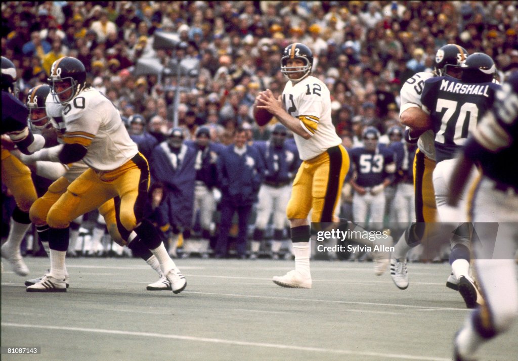 The first quarter of the game was completely dominated by both teams’ defenses. After both teams punted on their opening possessions, the Steelers started their second possession on their own 42-yard line. After a false start penalty on Pittsburgh offensive tackle Gordon Gravelle pushed the team back to their own 37, they advanced into Minnesota territory on an 18-yard run by running back Rocky Bleier. Two plays later, however, a 10-yard clipping penalty on Pittsburgh pushed the team back to their own 44-yard line, but they got those yards back with a 12-yard pass by quarterback Terry Bradshaw to wide receiver Frank Lewis to bring up 3rd-and-9. On the next play, however, defensive tackle Alan Page sacked Bradshaw for a 7-yard loss, forcing Pittsburgh to punt the ball back to Minnesota. After forcing the Vikings to punt again, this time from their own end zone, the Steelers started their next possession at the Minnesota 44. On 3rd-and-7, Bradshaw completed a 15-yard pass to tight end Larry Brown to put Pittsburgh in scoring position. The drive stalled at the Vikings’ 21-yard line, so kicker Roy Gerela attempted to kick a 37-yard field goal, but he missed it wide left. After another Minnesota punt, which put Pittsburgh on their own 47, the Steelers drove to the Vikings’ 16-yard line, aided by a 14-yard run by running back Franco Harris and an 11-yard run by Bradshaw, but during Gerela’s second field goal attempt, a 33-yarder, holder/punter Bobby Walden fumbled the snap and attempted to run the ball himself before getting tackled by linebacker Jeff Siemon, turning the ball back over to the Vikings and keeping the game scoreless. In the first quarter, the Vikings were limited to 20 passing yards, no rushing yards, and one first down which occurred on their opening play with a Fran Tarkenton 16-yard completion to John Gilliam. The Steelers did slightly better with 18 passing yards, 61 rushing yards, and four first downs.