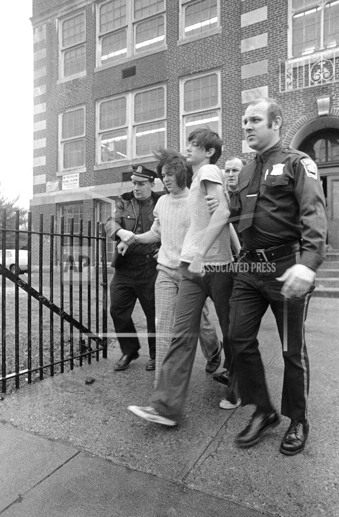 Racial violence erupted for the second time in five days at Boston’s Hyde Park High School, resulting in arrests of eight black and five white male students. A policeman and a social worker were injured slightly. Schools were quiet elsewhere in the city, which has had a variety of racial incidents at schools since a court-ordered busing plan went into effect last fall. The latest violence began as a shoving match during the first break of the morning as students were changing classes. Although groups of white students walked out early, classes were not cancelled.