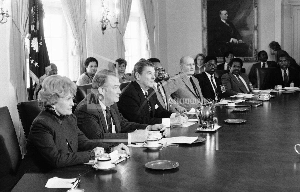 President Reagan attends a Cabinet Council meeting.