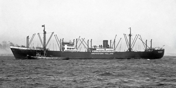 At 0705 hours, the Dutch neutral Arendskerk (Master Cornelis Johannes Hendrik Wijker) was spotted by U-44 about 100 miles SW of Ouessant (46° 55’N, 6° 34’W) and tried to escape when the U-boat was sighted. It needed seven shots across her bow to stop the vessel. When the papers were checked it became clear that she carried contraband and the crew was ordered to abandon ship. At 1010, one torpedo struck in the engine room, breaking the ship in two. The stern sank, but the forepart remained afloat and had to be sunk 30 minutes later by 18 shells from the deck gun. The survivors were picked up by the Italian merchant Fedora, transferred to the Dutch merchant Poelau Bras and landed at Lisbon. The 7,906 ton Arendskerk was carrying 4,000 tons of general cargo, including barb wire, galvanized sheets, nails, iron, brass tubes and mail and was bound for Durban, South Africa.