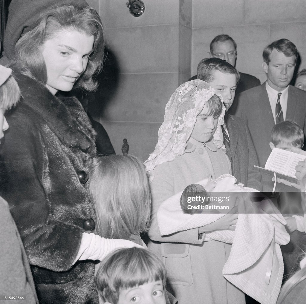 The ninth child born to Senator and Mrs. Robert F. Kennedy was named Matthew Maxwell Taylor Kennedy at a baptismal service yesterday at St. Patrick’s Cathedral. The baby’s middle names were for Maxwell D. Taylor, United States Ambassador to South Vietnam, a good friend of the Kennedys. Surrounded by a dozen kinsmen, including Mrs. John F. Kennedy and her two children, the newest member of the Kennedy family cried once as he was held over a marble baptismal font and a priest placed drops of water on his head.
