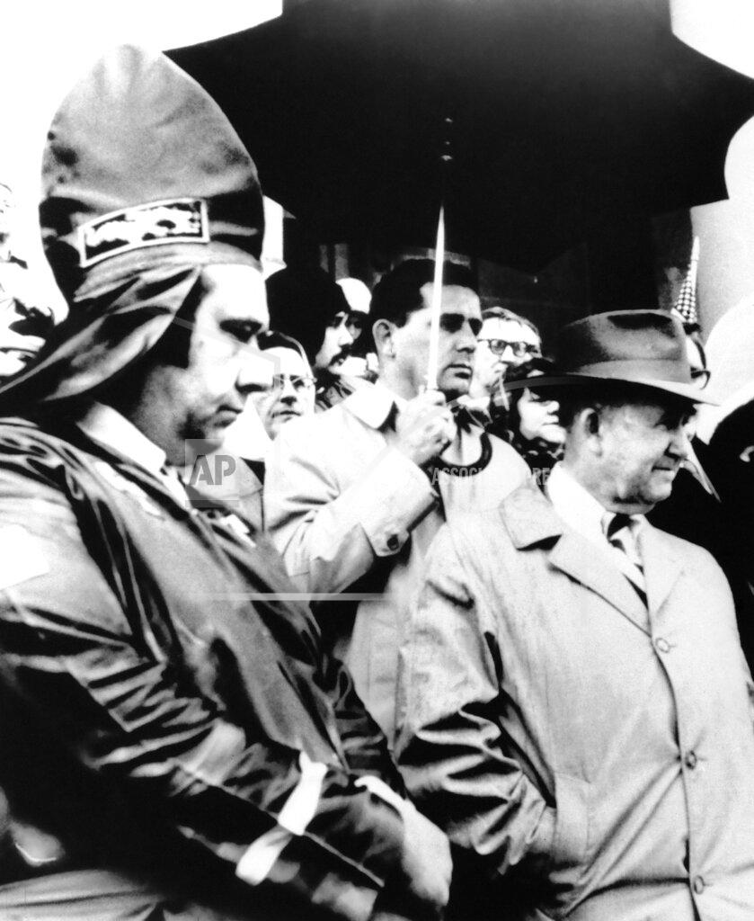 A minister and five other persons active in the school textbook protest in Kanawah County, West Virginia, have been indicted by a federal grand jury on charges of conspiring to blow up two elementary schools. The Ku Klux Klan’s support in the textbook fight was promised by Imperial Wizard James R. Venable, of Stone Mountain, Georgia, who said: This great invisible society (the KKK) will do everything it can to help you fine people fight these books of filth.” The indicted minister, the Rev. Marvin Horan, and his followers believe certain school books encourage disrespect for the law and religion. One county school was dynamited October 22.