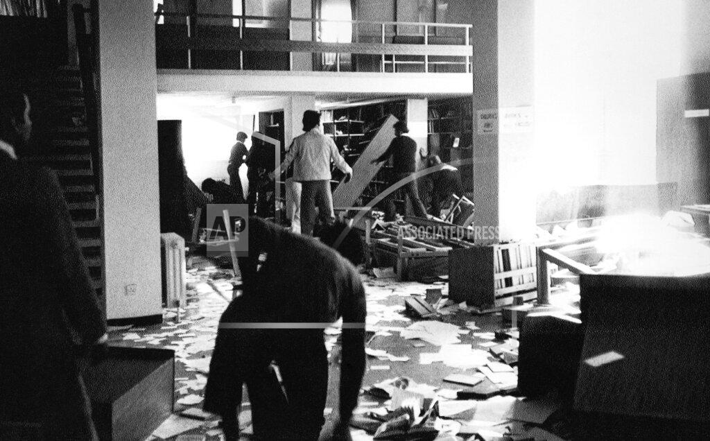 About 5,000 Greek Cypriot youths ransacked British offices in Nicosia and burned a wing of the United States Embassy in protest against London’s decision to let 10,000 Turkish Cypriot refugees leave a British military base for Turkey. The British decision infuriated ethnic Greeks, who believe that it helps the Turks to divide Cyprus into two separate districts. The refugees eventually are expected to be transferred to the northern part of Cyprus, which is under Turkish control, and established in homes and shops abandoned by Greek Cypriots during the Turkish invasion last July. The British say they acted on humanitarian grounds.