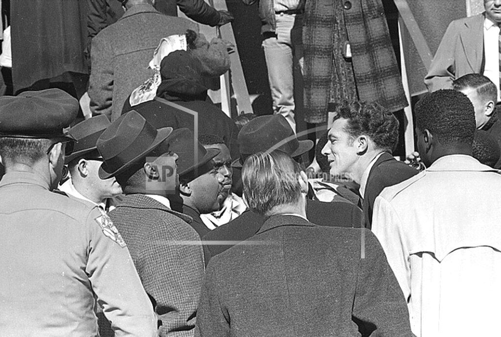 A white woman in tight slacks and a leather jacket stood in a corner shouting to the white man, “Get him, get him!” Wilson Baker, the city’s Director of Public Safety, pushed in and collared the man and dragged him to a patrol car. The attacker was identified as James Robinson, 26 years old, of Birmingham, a member of the National States Rights party, a small segregationist group that has been active in Alabama for several years. He was charged with assault and disturbing the peace.