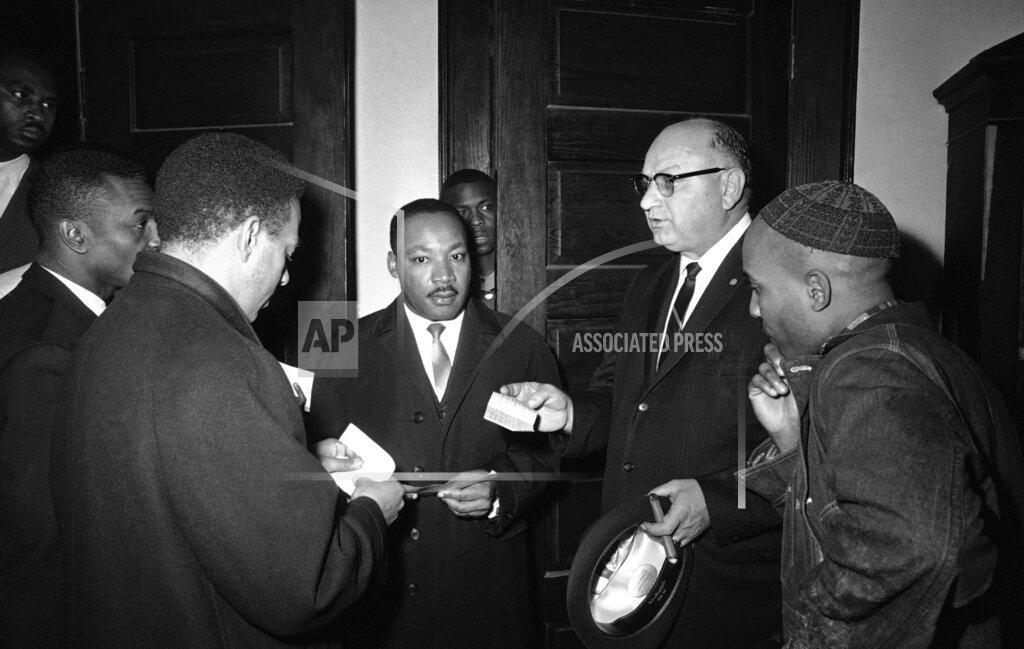 The Rev. Dr. Martin Luther King Jr. was watching from a car parked across the street. He stepped out of the car, walked into the Federal Building, which faces the courthouse, and asked the Justice Department to file for a court injunction against the sheriff. Dr. King, who is leading a voter registration drive throughout Alabama, charged that the arrests were unlawful and that the sheriff had been brutal. “I met with two officers of the Justice Department and filed a complaint that is to be immediately sent to Washington,” he told reporters later. “It was one of the most brutal and unlawful acts I have seen an officer commit.”