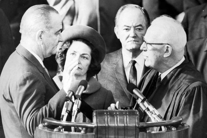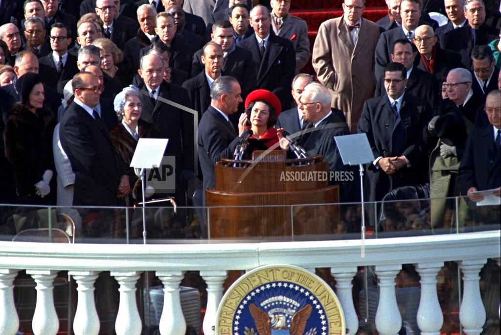 Mrs. Lyndon B. Johnson today became the first President’s wife in history to hold the Bible while her husband took the oath of office.