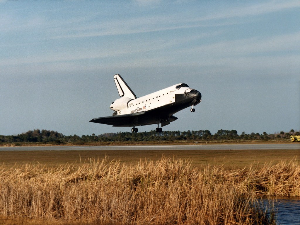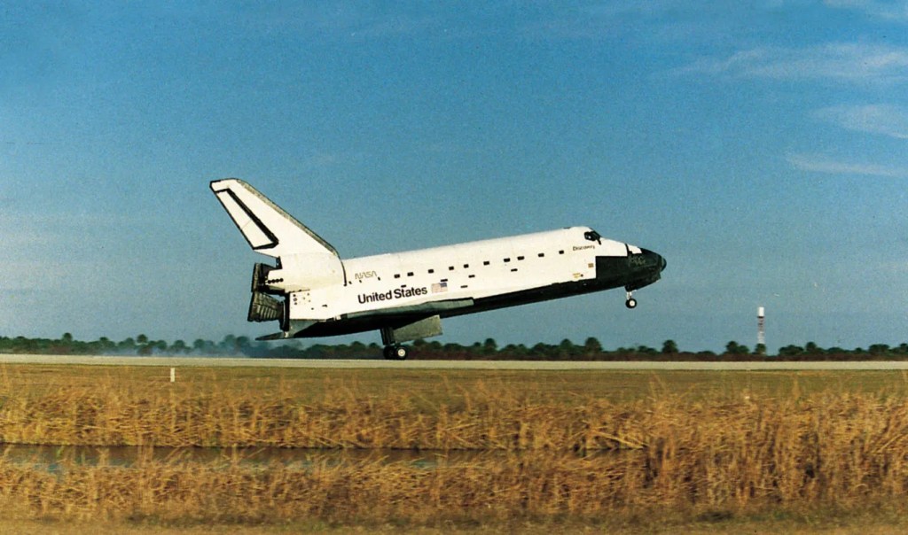 The crewmen looked spry and healthy when they stepped out of the shuttle and gave its landing gear and heat-shielding tiles a quick inspection. But, unlike past missions, the astronauts had no public welcoming ceremonies before they were whisked away to their homes in Houston. Nor were there any post-landing news conferences. The Discovery’s crew members were Captain Thomas K. Mattingly of the Navy, Lieutenant Colonel Loren J. Shriver of the Air Force, Lieutenant Colonel James F. Buchli of the Marine Corps and Major Ellison S. Onizuka and Major Gary E. Payton, both of the Air Force. The space agency did not announce the Discovery’s imminent return until shortly after midnight. This was in keeping with NASA’s arrangement with the Defense Department to withhold all information on the mission duration until 16 hours before the planned landing.