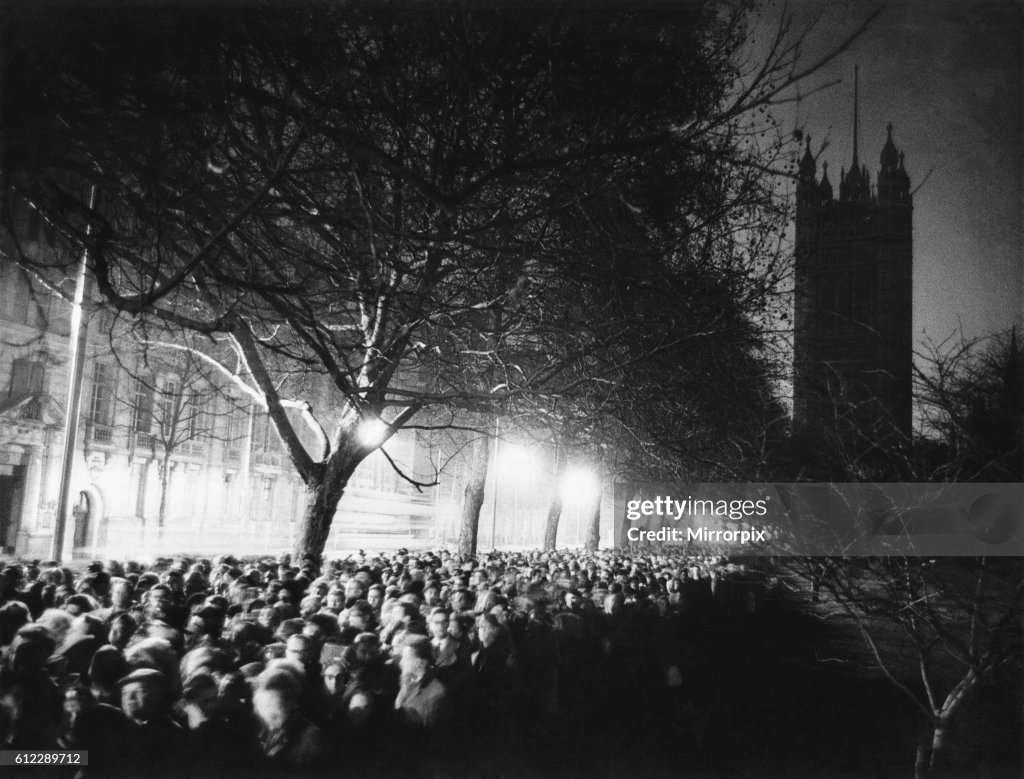 Queen Elizabeth paid an extraordinary tribute tonight to the greatest conmoner of the age. She visited Westminster Hall to walk past the bier of Sir Winston Churchill. It was something that no British sovereign in memory had done for anyone, save royalty.