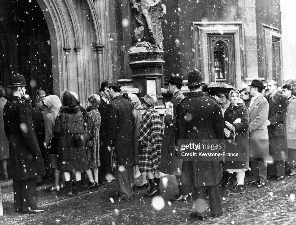 As she and members of her family drove to the hall from Buckingham Palace, the long, patient line of people was still waiting to enter the ancient edifice. More than 150,000 persons had walked past the black-draped catafalque.