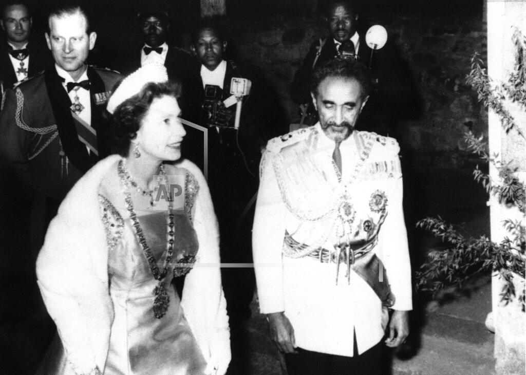 Emperor Haile Selassie and thousands of his subjects welcomed Queen Elizabeth II of Britain today for a state visit to the ancient African kingdom of Ethiopia. Elizabeth flew from London on a four-engine jet for the first formal call on Ethiopia by any British monarch. Her eight-day visit is expected to help focus attention on Ethiopia as a unifying center for Africa’s emerging nations. The smiling Queen wore a pink floral dress, a yellow silk coat and a petaled hat for her entry into Addis Ababa. She found the sprawling capital a city of contrasts — modern buildings flanked by thatched huts; streets newly cleared of roving livestock by a royal order, and pet lions, freshly washed and cleansed of fleas, chained in the gardens of the Emperor’s white marble palace. Haile Selassie, who has ruled for 34 of his 72 years, greeted the Queen at the airport. He wore a dark blue field marshal’s uniform and a hat crowned with a lion’s-mane plume. Ethiopians packed the airport grounds and sometimes 100 deeplined the new highway leading into the city.