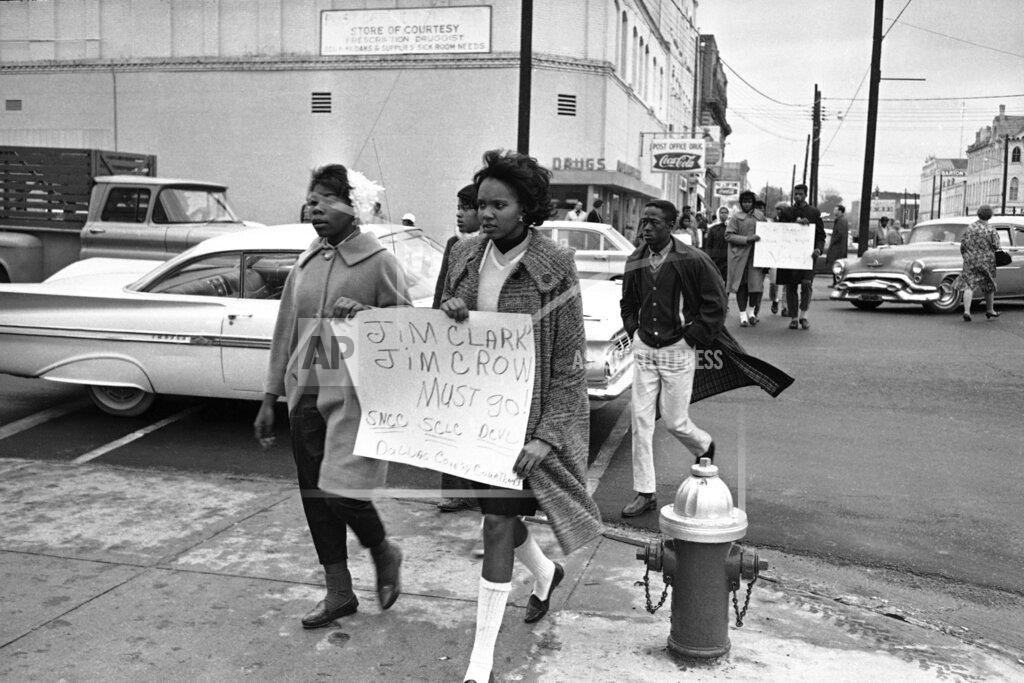 It was the first mass arrest made by the city since the campaign opened. A new administration has been trying to pursue a more moderate course in dealing with the Black protests. Meanwhile, John Love, director of the Student Nonviolent Coordinating Committee in Selma, met with the students in a second church and organized small groups of pickets. The first to arrive at the courthouse consisted of 11 boys and four girls, By this time a cold drizzle had begun to fall, and for a while Sheriff Clark let them march in front of the courthouse carrying placards that said. “One Man, One Vote.” In a few minutes, however, he came out, stopped the line and read them an order from Circuit Judge James A. Hare, saying the court was then in session and if they did not disperse at once they would be held in contempt. He acted under a law prohibiting demonstrations while a court is in session.