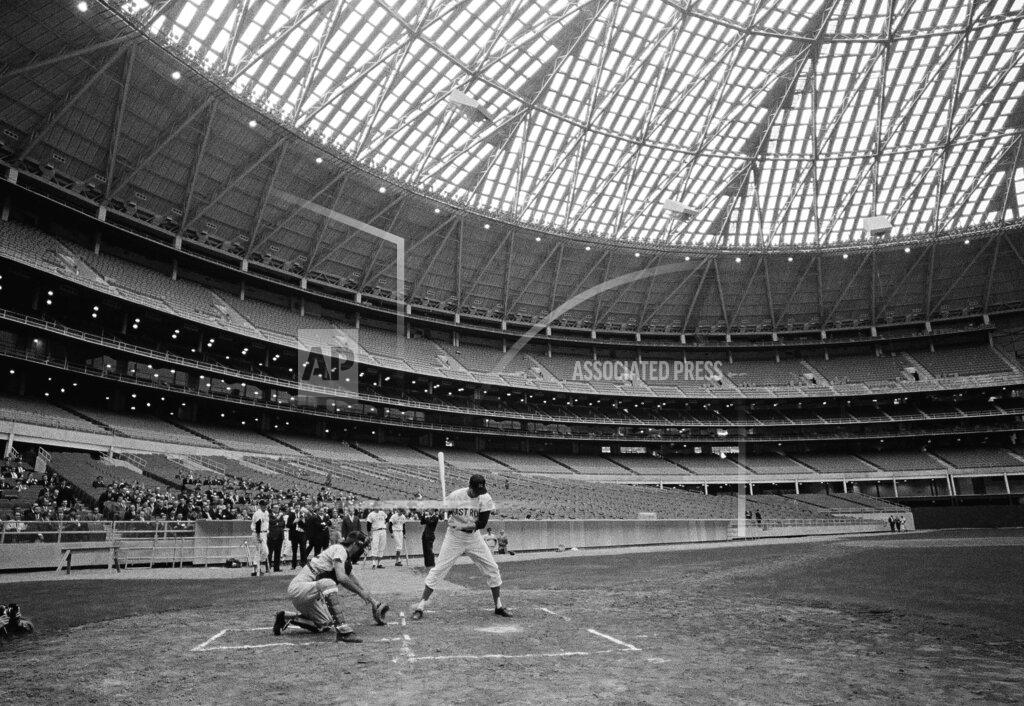 A few Houston Astros take the field for the first practice inside the new Astrodome. Rusty Staub is the only player to swat a ball over the fence as 250 members of the press look on. Pitchers are relieved to discover that breaking pitches still break indoors. Singer Anita Bryant is on hand to deliver a ceremonial first pitch.