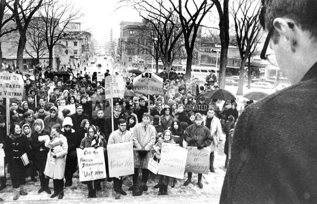 A mob of about 3,000 Asian and Russian students who were protesting against the American bombing of North Vietnam attacked the U.S. Embassy in Moscow. Two reporters, Adam Clymer of The Baltimore Sun and Bernard Ullman of the Agence France-Presse news agency, were injured, and more than 200 windows in the ten-story building were shattered before Moscow police intervened.