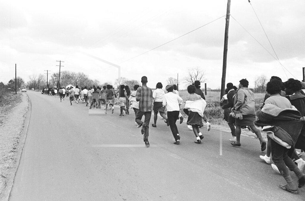 In Selma, Alabama, Sheriff James G. Clark and a group of deputies with night sticks and electric cattle prods led 165 Black demonstrators, all children and teenagers, on a forced march into the Dallas County countryside today. The youngsters were marched at a pace alternating between a run and a rapid walk while the sheriff and members of the Dallas County sheriff’s posse rode in cars and spelled each other at the task of drill master. Several youngsters told newsmen later that the sheriff’s men had used night sticks and electric cattle prods on them. The sheriff said he had not seen anything like that. “You’ve been wanting to march, now let’s go,” the possemen yelled as they trotted beside the Blacks. “Close up the ranks back there. Come on, close it up, close it up.”