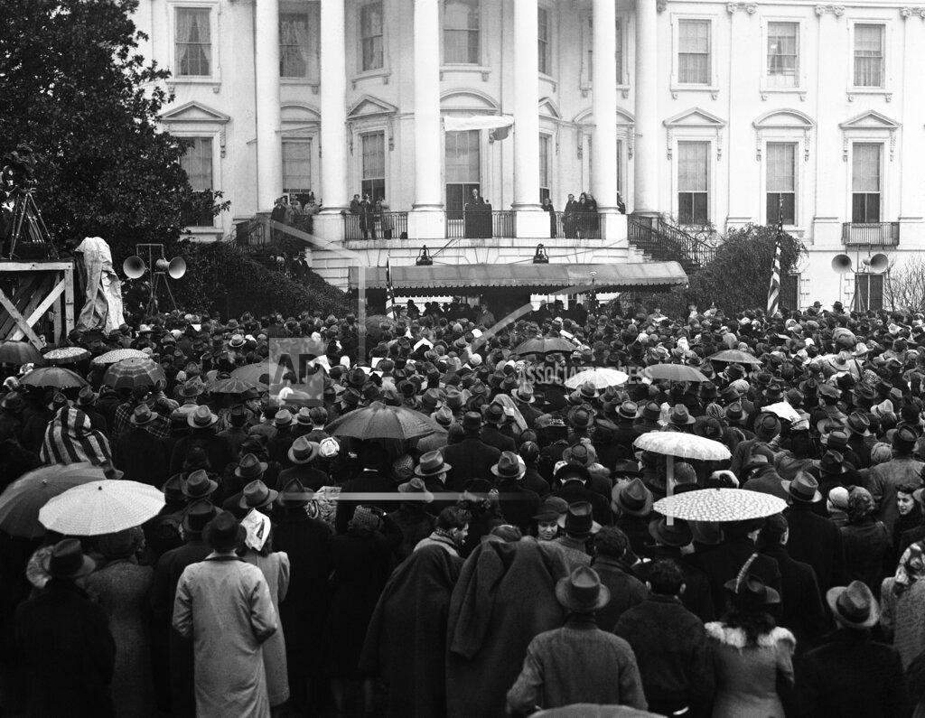 From the south portico of the White House, U.S. President Franklin D. Roosevelt confronted a gathering of 4,500 members of the American Youth Congress, which had recently passed a resolution declaring that granting aid to Finland was an “attempt to force America into the imperialistic war” against the Soviet Union. Roosevelt told them that it was “a grand thing” for youth to be interested enough in government to come to Washington, but offered “some words of warning or perhaps I should say of suggestion … do not as a group pass resolutions on subjects which you have not thought through and on which you cannot possibly have complete knowledge.” The president continued, “That American sympathy is ninety-eight per cent with the Finns in their effort to stave off invasion of their own soil is by now axiomatic. That America wants to help them by lending or giving money to them to save their own lives is also axiomatic today. That the Soviet Union would, because of this, declare war on the United States is about the silliest thought that I have ever heard advanced in the fifty-eight years of my life. That we are going to war ourselves with the Soviet Union is an equally silly thought.” The organization responded by booing the president, but the event was politically useful to Roosevelt in that it served as a rejoinder to accusations from his opponents that he was sympathetic to communism.
