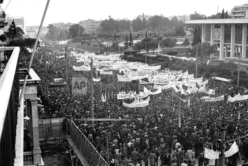 Thousands of Greek and Greek Cypriot students marched on American and British diplomatic offices in Athens and Salonika protesting the declaration of a Turkish Cypriot state within a Cyprus federation. In Athens, Greek Cypriot leader Glafkos Clerides said he had reached an identity of views with the Greek foreign minister in talks on handling the Cyprus issue. A Cyprus group, led by Clerides, will go to New York to sound out members of the U.N. Security Council before council debate on Cyprus opens Tuesday. Secretary General Kurt Waldheim cut short a Mideast tour to return for the Cyprus talks.