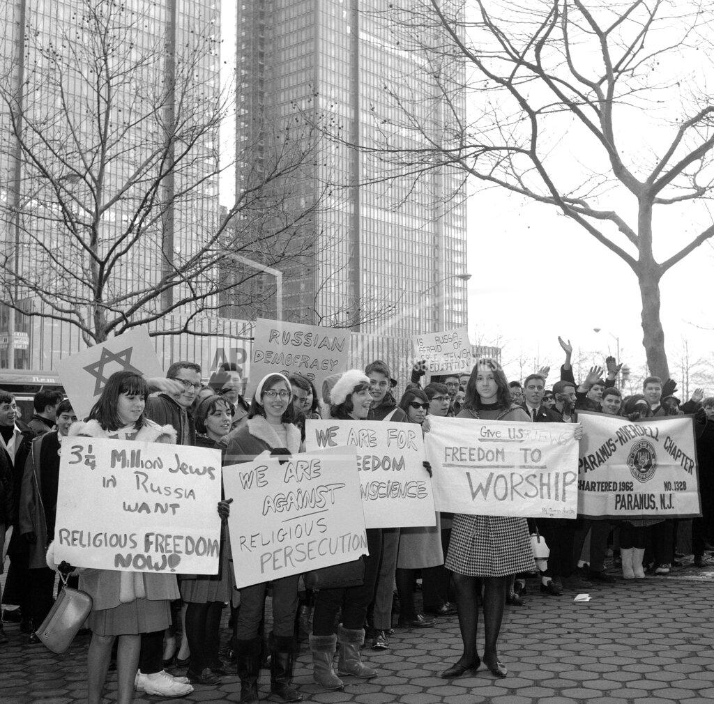 About 700 teen-agers, mostly members of synagogues in New Jersey, demonstrated near the United Nations yesterday to protest “cultural and religious persecution of Jews” in the Soviet Union.