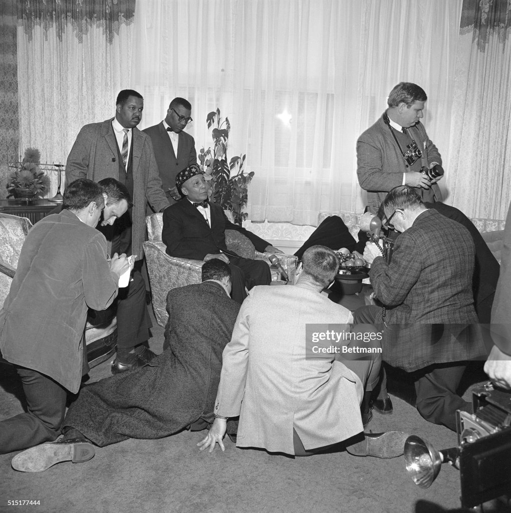 Elijah Muhammad, the head of the anti-white Black Muslims, said he is not fearful of reports he might be the target of killers seeking revenge “because we are innocent of Malcolm X’s death.” Elijah Muhammad denied today that the Black Muslim movement, which he leads from a 19-room mansion here, had anything to do with the slaying yesterday of Malcolm X. Malcolm, the former No. 2 man of the Muslims who defected and set up a rival movement, was a “victim of his own preaching,” Muhammad said at two news conferences. “I don’t have any knowledge of anyone trying to kill Malcolm,” he said. “We have never resorted to no such thing as violence.” He said of Thomas Hagan, a suspect in the New York slaying: “He is a stranger to us.” Hagan has been identified as Talmadge Hayer of Paterson, New Jersey. Seated on a carved, upholstered chair in his 20-by-40-foot living room with silk-covered walls, he said that the Black Muslims were making their own investigation of the assassination to determine whether any of his followers had been involved.
