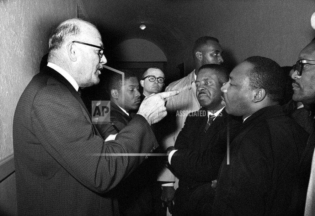 Later today, outside the registrar’s office in Hayneville, Dr. King was confronted by a tall and bald man with white sideburns. During a 20-minute debate with Dr. King and other Black leaders, he refused to give his name, but it was learned that he was Carl Gohlson, a member of the board. Mr. Gohlson said for the first time in his memory Blacks had applied this morning to register. But they had gone and he would not say whether they were successful. “We are going to get Blacks registered and it is not going to be too long.” Dr. King said. “We were wondering if you! could help us with some information.”