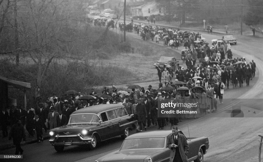 Dr. Martin Luther King eulogized Jimmie Lee Jackson, who succumbed to bullet wounds inflicted during a civil rights demonstration at Marion, Alabama, at funeral services and graveside rites. Jackson was proclaimed a martyr and buried in a country graveyard here today. About 4,000 Blacks attended two funeral services for him, the first at Selma this morning and the second at Marion this afternoon. More than 1,000 walked three miles in the rain to bury him on a pine hill. The Rev. Dr. Martin Luther King Jr. preached his funeral at Marion, Mr. Jackson’s hometown, taking the occasion to pledge increased determination in the Black’s struggle for equal rights. Dr. King told a crowd of hundreds where he thought the blame lay for the death of the 26-year-old Black. who was fatally injured as Alabama state troopers broke up a civil rights night march February 18 at Marion. Tonight the Rev. James Bevel. Alabama project director of the Southern Christian Leadership Conference, announced that a group of Blacks would walk the 50 miles from Selma to Montgomery next week, starting Sunday, to dramatize the drive for voting rights. He said Dr. King would lead the walk. “We are going to see the Governor,” he said.