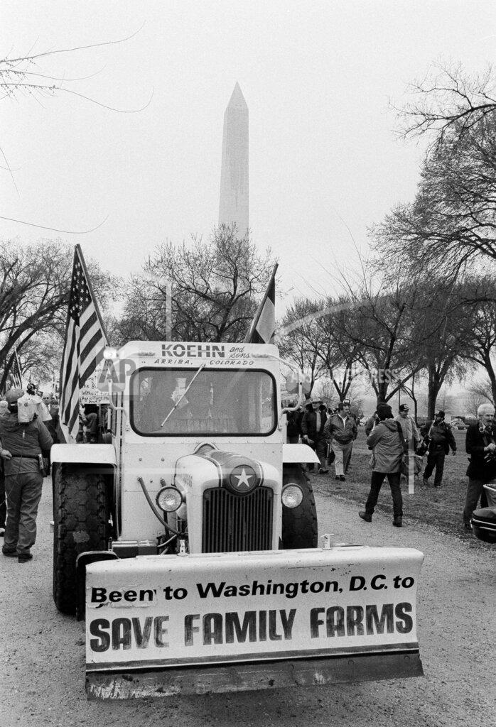 About 700 grain farmers from America’s Midwest rally in Washington, D.C. at the Agriculture Department and march to the White House, demanding higher guaranteed prices for their products in pending farm legislation.