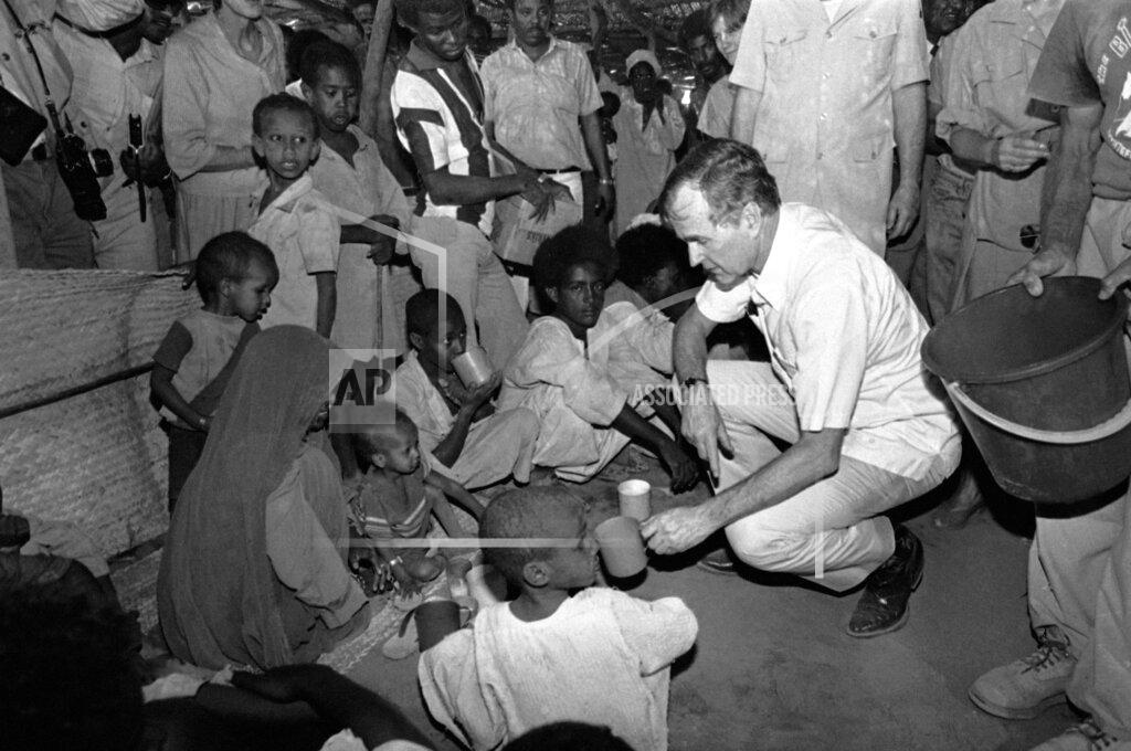 They galloped alongside the motorcade of four-wheel-drive vehicles moving swiftly on the narrow road in the eastern Sudan. On camels that they prodded with kicks and strikes from thin wooden sticks, the Sudanese riders greeted Vice President Bush as his American caravan made its way to a refugee camp that has come to symbolize the African famine. The camp, Wad Sherifie, contains about 70,000 Ethiopians who fled the northern provinces of Eritrea and Tigre. Relief officials estimate that 600,000 Ethiopians have poured into the Sudan as guerrilla war has made it difficult for agencies to provide them with food in their own country. On the second day of a trip through this region, Mr. Bush received what appeared to be an uncommonly warm reception. At the refugee camp, crowds stood outside barren huts to watch and at times offer a cry of approval. Mr. Bush, wearing a safari shirt, khaki slacks and leather boots and accompanied by his wife, Barbara, said at one point on the tour that “I can’t help but be deeply moved.”