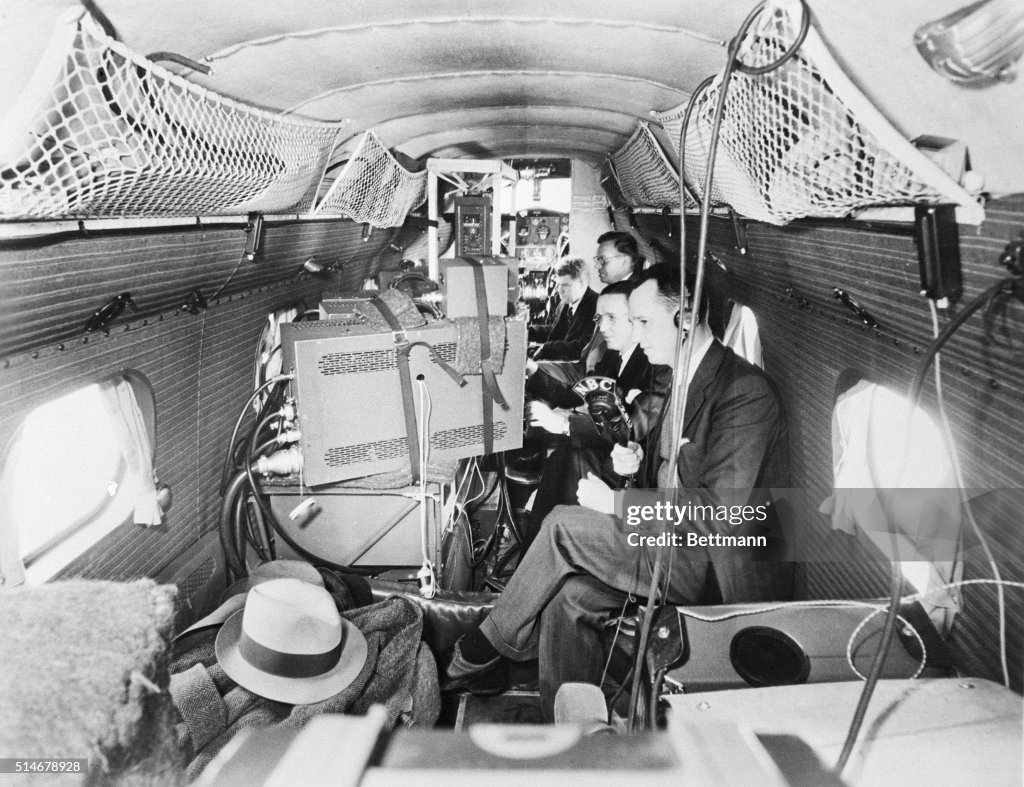 The first telecast is made from an airplane, over New York City. Radio and aviation joined yesterday afternoon to take the television audience on a forty-five-minute sightseeing tour of New York.