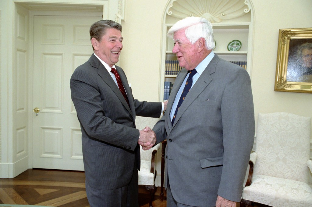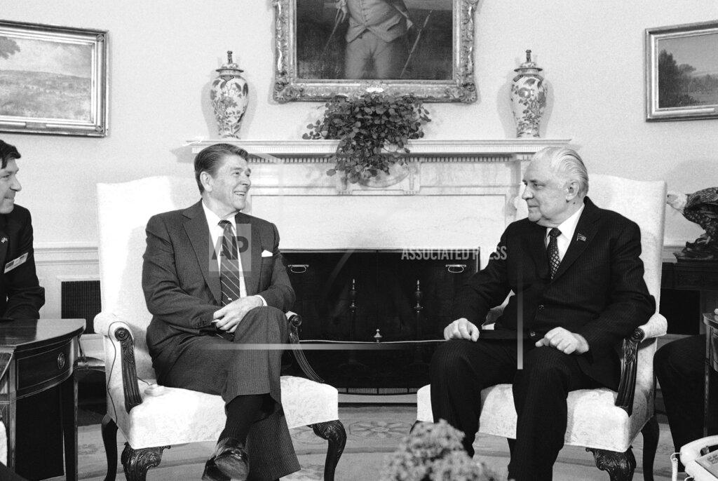 President Reagan meets with Member of the Soviet Politburo, Union of the Soviet Socialist Republics, Vladimir Vasil’yevich Shcherbitskiy to discuss U.S. and Soviet Union relations. President Reagan and a Soviet leader agreed that the Soviet people would not start a war against the United States. But Mr. Reagan told the visiting official, Vladimir V. Shcherbitsky, that “unfortunately, the people in the Soviet Union don’t have much to say about what their government does.” The comment, as related by Larry Speakes, the White House spokesman, came during what was described as an hourlong “lively give-and-take” between Mr. Reagan and Vladimir V. Shcherbitsky, the Soviet visitor. Mr. Shcherbitsky, who heads a delegation of legislators, is the Communist leader of the Ukraine, the Soviet Union’s second most important republic, after Russia. He told reporters on leaving the White House that he had spent most of the time “trying to prove” to the President that it “is not worthwhile” to continue the research program into the proposed space-defense system popularly known as “Star Wars.”