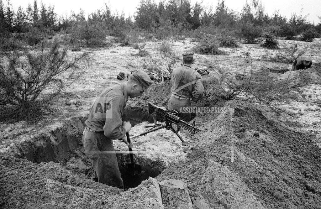 The Marines continue to land around Đà Nẵng. Among today’s arrivals is the first U.S. Armor — an M48A3 tank of the 3rd Marine Tank Battalion; it will be followed in a few days by more tanks, including those with flame-throwing capabiity. There is scattered firing from Việt Cộng hidden onshore, but no Marines are hit. The Marines are at once assigned to protect the base, both from the immediate perimeter and from the high ground along a ridge to the west.